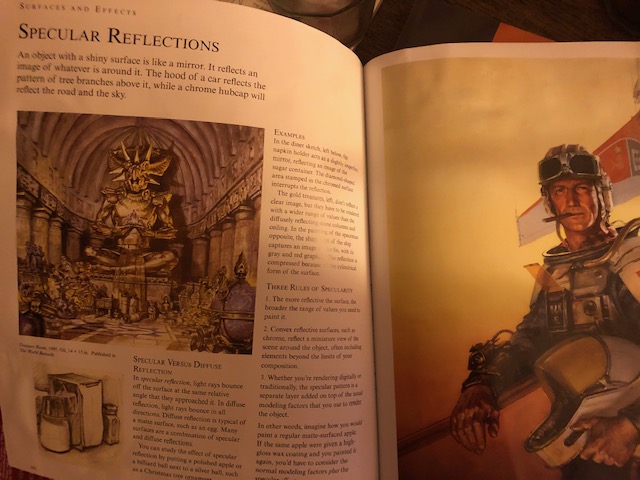 Each principle is allotted one page, with a smallish amount of text, and a few examples from the author’s own work. The writing is very accessible, and it’s brief and clear enough for you to completely absorb it when you’re in the middle of a project and looking for the solution to an art puzzle. While much of it is beyond what I’ll probably ever need, it’s answered all the questions I’ve had so far, and the rest is there when or if I’m ready. Drawing an underwater scene and want to understand how the light should be distorted? Don’t know where to begin with a limited palette? Gurney’s your man.